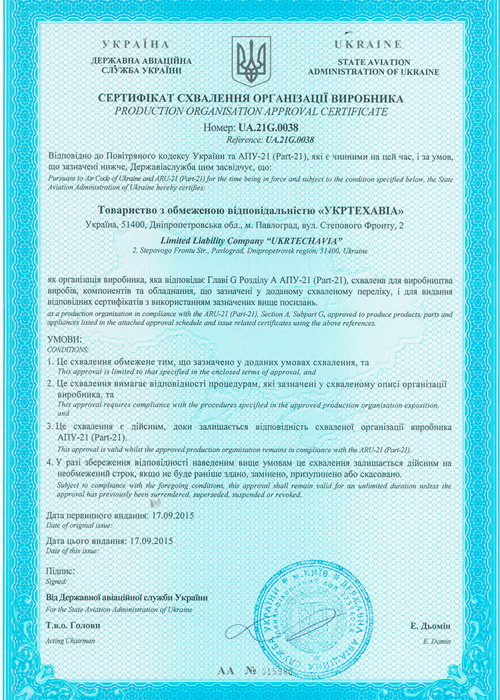 UkrTehAvia公司ISO9001證書